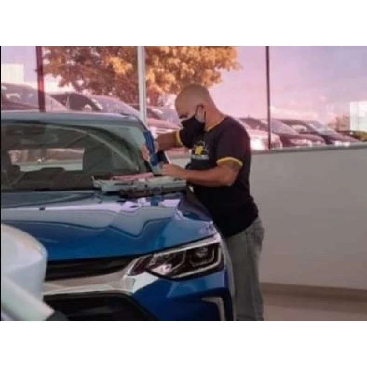 A reparação é feita com resina especial para vidro que sela a trinca dando transparência acima de 70% dependendo do tipo de trinca e tempo de exposição as impurezas.